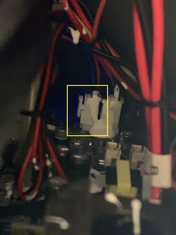 このコネクターの12Vは、基板からモーターを起動させる信号により供給されるため画面操作により12Vを起動させテスターで計測しました。12V出力されていない!
